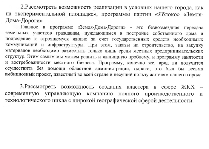 Денис Станиславов пообещал рассмотреть каждое предложение местного отделения партии "Яблоко" и ознакомиться с переданной ему программой. По другим предложениям глава города высказался сразу: