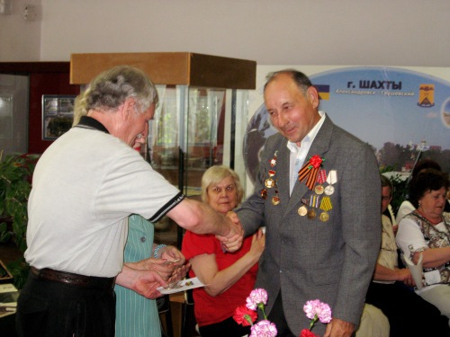 Председатель Союза писателей Дона Иван Иванович Снисаренко рассказал о городе Новочеркасске, как о столице казачества и вручил медали за патриотическое, духовно-нравственное воспитание молодежи и весомый вклад в развитие культуры Дона талантливым шахтинцам, членам Союза писателей Дона, руководителю региональной молодежной организации "Духовное наследие Александру Владимировичу Туховскому, педагогам шахтинских школ.