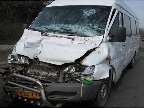 Вчера в 12:30 на 1035 км автодороги М-4 "ДОН" произошло столкновение маршрутного такси, следовавшего по маршруту Гуково-Ростов и тягача с полуприцепом.