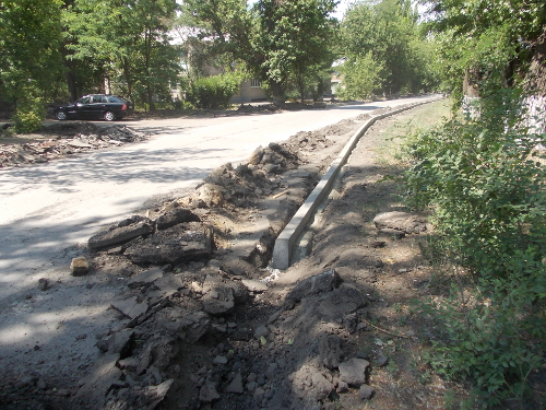 - Ещё 9 Мая у нас тут всё разрыли, расчистили место под новый асфальт, но поставили лишь бордюры, - жалуется пенсионер Пётр Терпак, проживающий в доме N 22 по улице Татаркина. - Когда сделают остальное, неизвестно. Рабочих на этом участке не видели давно, а те, что были, не убрали за собой мусор. Дело в том, что виды работ распределены между разными фирмами-подрядчиками. В итоге ремонт затягивается на неопределённое время.