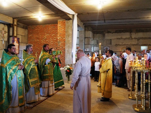 По завершении праздничного богослужения иерей Николай Осяк обратился к собравшимся в храме со словами поздравлений и выразил уверенность, что помощью Божией храм удастся достроить.