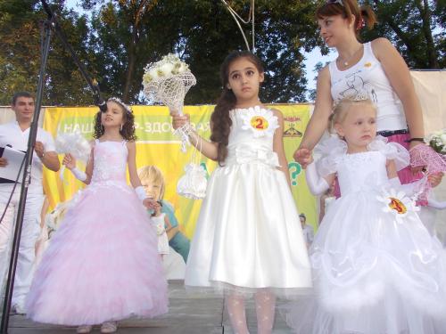 Самой младшей из примеривших свадебное платье - Катюше Тереховой - всего два с половиной года. Мама так объяснила за неё, почему дочь участвует в конкурсе: "На горшок хожу сама - замуж мне уже пора". А самая старшая из участниц, Анжела Логвинова, - замужняя дама, мать двоих детей - сказала, что просто захотелось повеселиться.