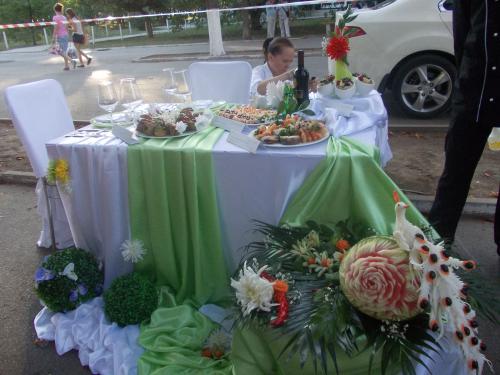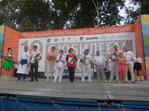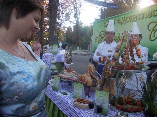 Блеснули своими кулинарными изысками кафе и рестораны города. Чего только не предлагали они отведать шахтинцам - тут и всевозможные рыбные, мясные закуски, и шашлыки, и вареники, и жареные перепела... Всё оригинально, с выдумкой сервировано, всё изумительно вкусно, а главное - совершенно бесплатно. Больше всего поражала воображение огромная пица, приготовленная рестораном "Сан тропе", который не только стал победителем конкурса, но и завоевал приз зрительских симпатий.