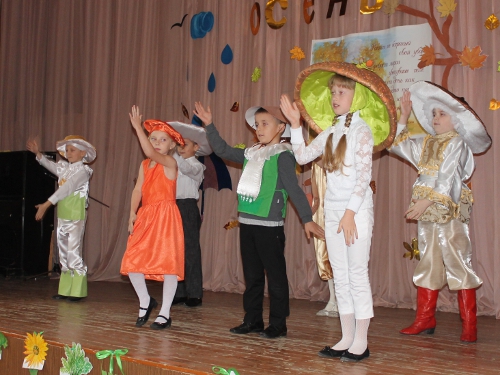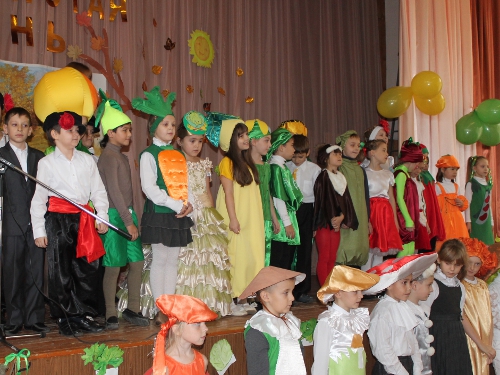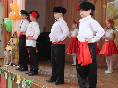 В гимназии имени Пушкина прошёл костюмированный концерт "Золотая осень", подготовленный детьми 3-а, 2-а, 2-б классов и учителями Т.И. Левиной, Н.В. Гавриловой и И.А. Юрьевой. Дети устроили весёлый праздник тем, кто в этом году первый раз переступил порог гимназии. Выступления на сцене детей по возрасту чуть постарше основной массы зрителей, завораживало не только первоклассников, но и учителей, и родителей, снимавших торжество на видеокамеры. Инсценировки, танцы и песни были посвящены осени. В ярких костюмах, символизирующих овощи и фрукты, которые осенью собирают в садах и огородах, маленькие артисты играли очень натурально. А балом правила королева Осень, в золотистых одеждах и на золотом троне.