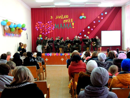 Концерт в День матери - это уже школьная традиция. На праздник собрались не только ученики и педагоги. Самая любимая и почетная гостья - Галина Ивановна, мама бывшего выпускника школы Вячеслава Ямпольского. Ее сын, прапорщик медицинской службы, в 1995 году погиб в Чеченской республике при исполнении служебного долга. Сейчас именем героя названа школа. Ежегодно в концерте принимает участие и духовой оркестр военной части N3660 под руководством Евгения Сонина. В ней когда-то служил Вячеслав.