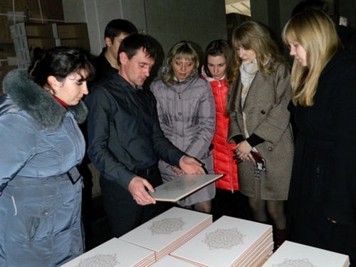 В заключение экскурсанты посетили поток "Декоративные элементы" - по мнению многих, самую интересную часть экскурсии. Начальник участка сериографии Сергей Дегтярь рассказал о процессе нанесения на готовую простую плитку декоративных узоров и рисунков. Этот процесс декорирования называется "третий обжиг". Участников экскурсии впечатлил стенд с образцами продукции, ведь в настоящий момент число возможных разновидностей декоров и бордюров увеличено до 338. Затем все последовали на линии производства, чтобы узнать, как получается такое многообразие.