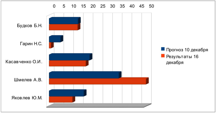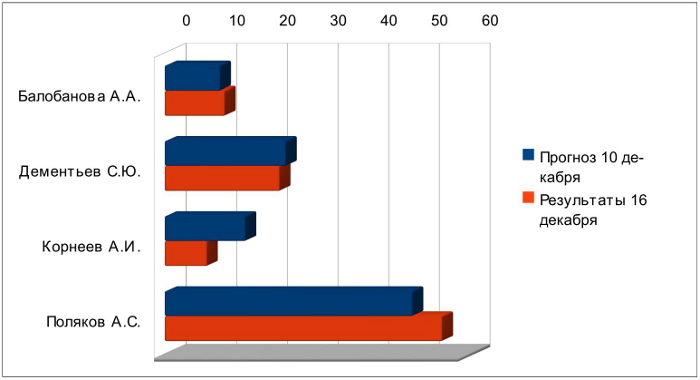 Любопытно сравнить приведённые результаты с прогнозом, который был сделан на городском форуме за несколько дней до выборов, 10 декабря.
