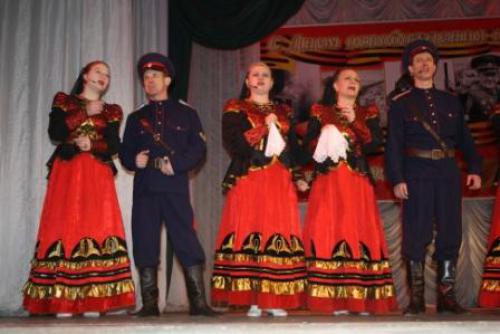 Виновников торжества порадовали концертными номерами муниципальный ансамбль песни и пляски "Надежда", отряд юных барабанщиков из Шахтинского имени генерала Я.П.Бакланова казачьего кадетского корпуса, коллективы из городского Дома детского творчества. В фойе театра развернулась тематическая выставка Шахтинского краеведческого музея.