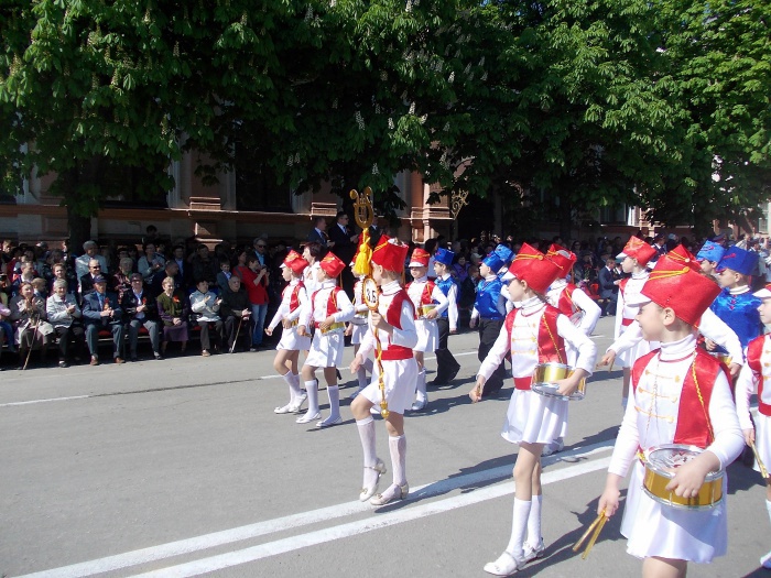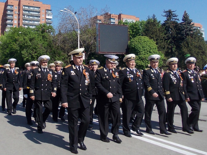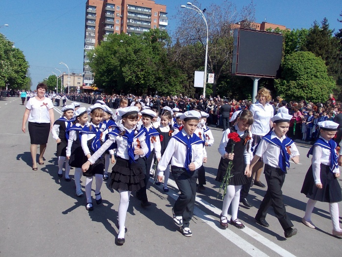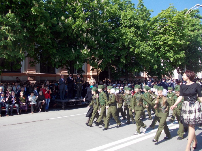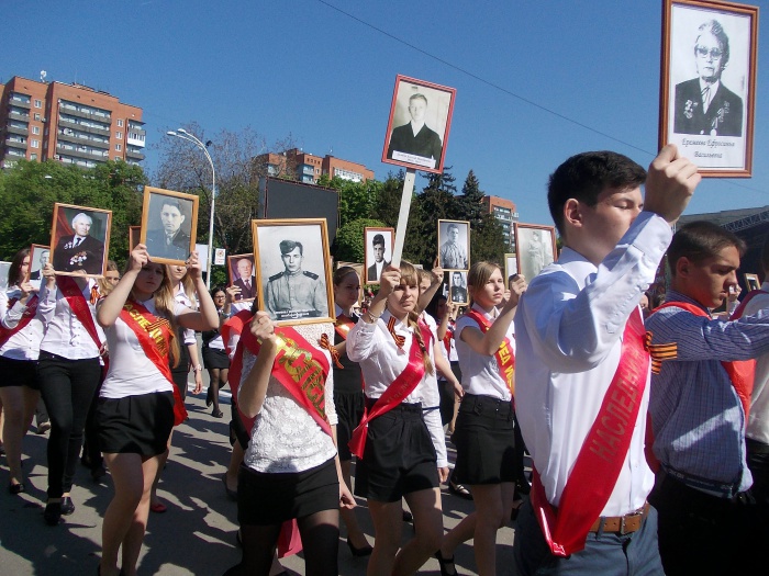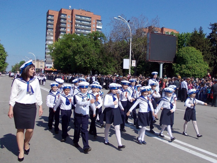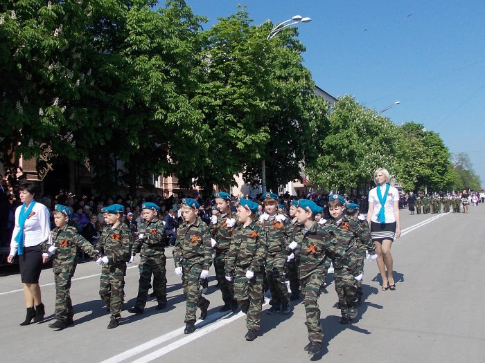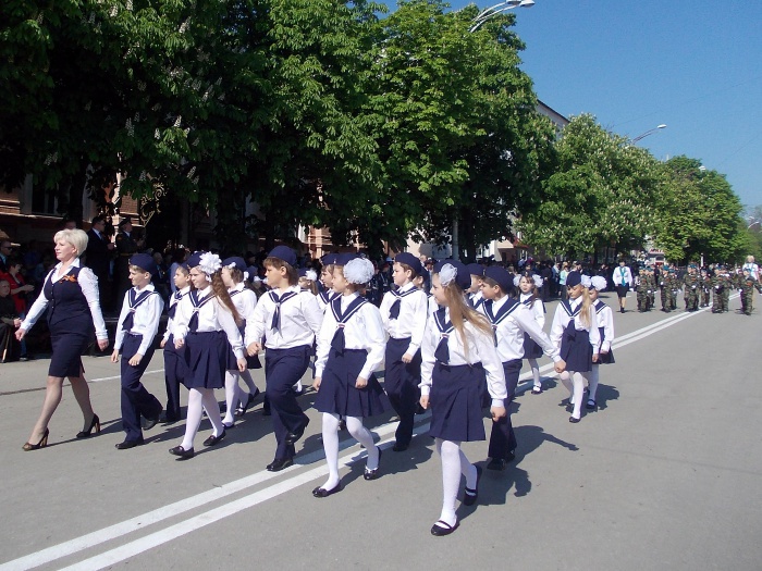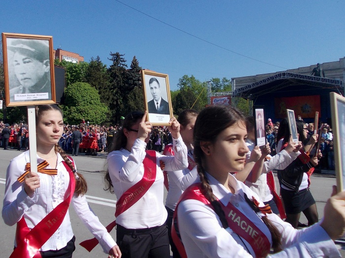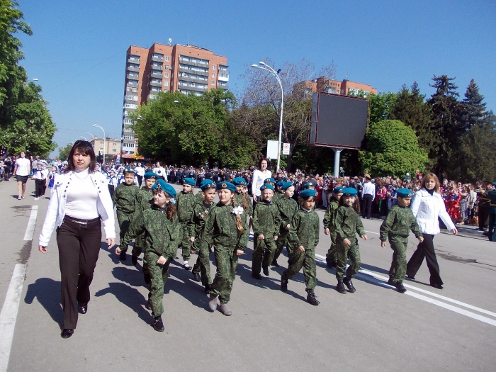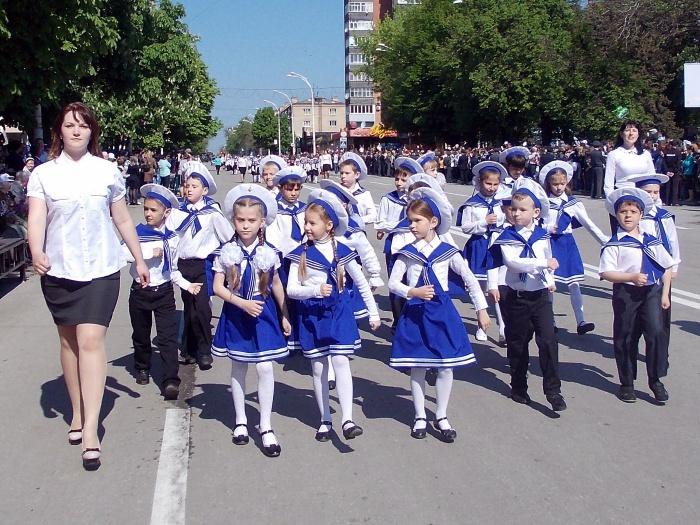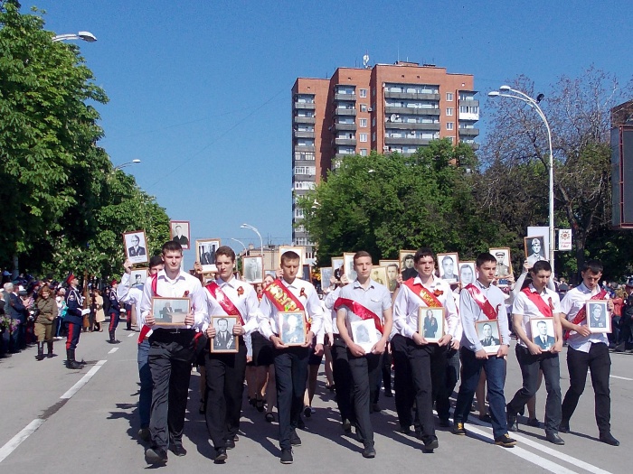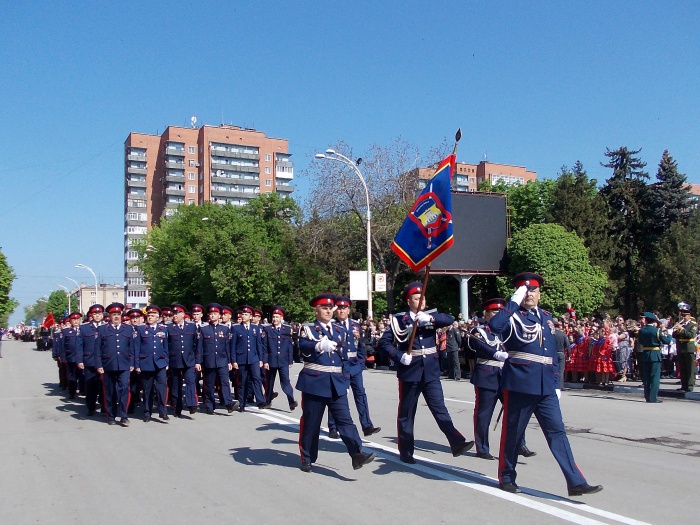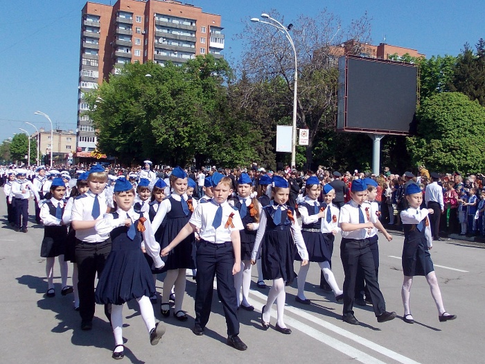 В парадных колоннах прошли воспитанники казачьего Я.П. Бакланова кадетского корпуса, участники локальных войн и боевых действий, члены Шахтинского морского собрания, казаки. Особую колонну составили участники акции "Наша Победа. Родные лица", которая второй год подряд проходит в городе Шахты по инициативе местной организации Союза журналистов России. Украшением торжественного шествия стали самые маленькие его участники - первоклашки, одетые в военную, парадную форму и в народные казачьи костюмы.