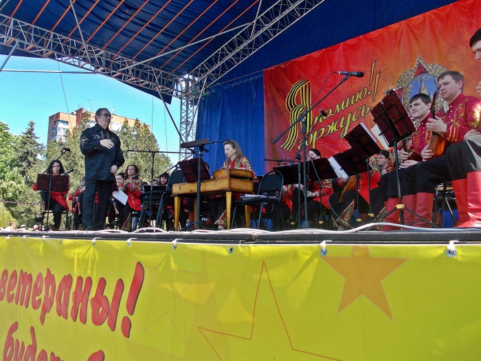 По окончании парада на площади начался концерт приехавшего из Ростова украсить шахтинский праздник оркестра русских народных инструментов "Дон". В воздухе разнёсся дымок полевой кухни, и вмиг выстроилась очередь за традиционным угощеньем. А только что шедшую парадом боевую технику оккупировали ребятишки.