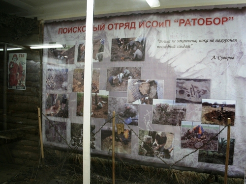 Центральную часть экспозиции занимают находки студенческого поискового отряда "Ратобор" – гильзы снарядов, военные каски, предметы солдатского обихода. Все находки бережно хранятся в музейном комплексе института. На протяжении многих лет "ратоборцы" выезжают в экспедиции по местам боёв, участвуют в поиске безымянных воинских захоронений, установлении имён погибших солдат и офицеров.
