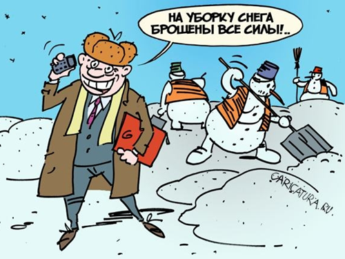 Около 10 утра, когда снег пошёл особенно густо, во дворе двухэтажек на углу улицы Достоевского и переулка Обнорского появились трактор с ковшом, на дне которого виднелся песок, и с десяток рабочих в ярких жилетках, некоторые — с вёдрами в руках. Посеяв под падающие снежные хлопья пару горстей песочка, вся команда вслед за трактором повернула на выход. В ответ на насмешки случившихся во дворе местных бабушек и на вопросы, зачем они занимаются ерундой, снегоборцы с достоинством отвечали: "Мы — люди маленькие, что начальство приказало, то и делаем".