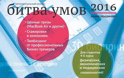 "Битва умов" – это интеллектуальное состязание для студентов, которое проходит два раза в год по разным научным направлениям. В ходе конкурса студенты различных специальностей и вузов объединяются, чтобы предложить новые подходы к решению актуальных научных и бизнес-задач и презентовать свои идеи авторитетному жюри из представителей науки и бизнеса.