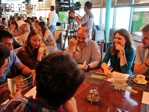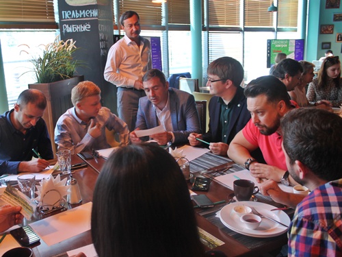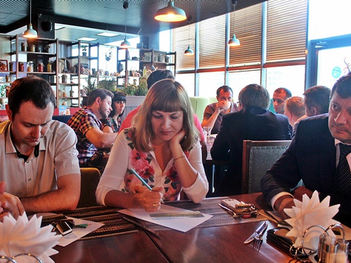 Необычно проходил сегодняшний деловой завтрак в ТЦ "Максимум". Члены Ассоциации предпринимателей Ростовской области во главе с Аркадием Гершманом и приглашённые гости всерьёз были заняты... игрой.
