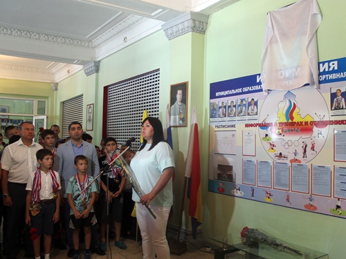 Братья Самургашевы и вдова Стрельникова Наталья Борисовна сняли белое полотнище. Возложили цветы, и потом все долго фотографировались на фоне мемориальной доски и олимпийского факела. А сверху, с портрета, как живой, взирал на всё это с доброй сдержанной улыбкой сам виновник торжества.