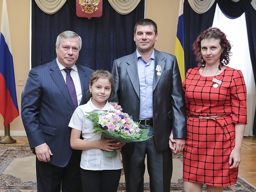 Особую признательность глава региона выразил многодетным семьям, удостоенным ордена и медали ордена "Родительская слава". В их числе - Оксана и Алексей Минеевы из Шахт. В их семье воспитывается шесть родных и семь приемных детей.