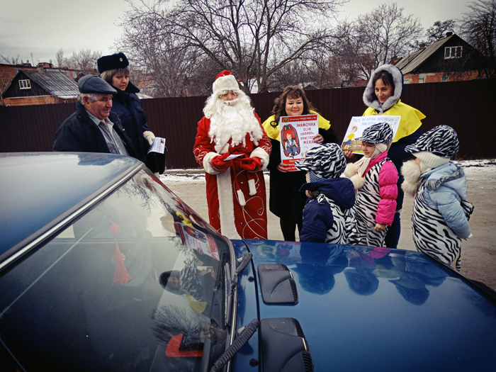 Вместе с главным зимним волшебником Дедом Морозом, чтобы еще раз напомнить водителям о соблюдении правил дорожного движения. Сразу после новогодних каникул, в рамках акции "Безопасная зимняя дорога" инспекторы шахтинского отдела пропаганды и их юные помощники из детсада "Золотая рыбка" организовали профилактическое мероприятие.