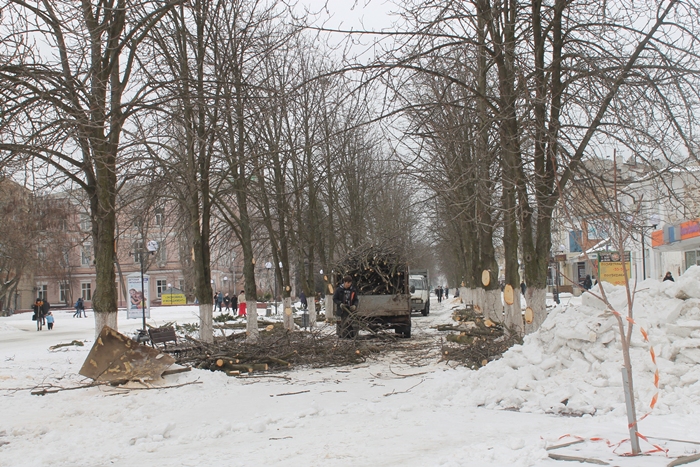 Вряд ли остались ещё такие наивные шахтинцы, которые подумали, что улицу Шевченко расчищали и приводили в порядок для их, жителей, удобства и услаждения взоров. С понедельника на "Шахтинском Арбате" разбивали, счищали и вывозили слежавшиеся с января и отлично утрамбованные пешеходами пласты льда и снега. Даже нижние ветви каштанов обрезали, чтобы улица выглядела уж совсем ухоженной.