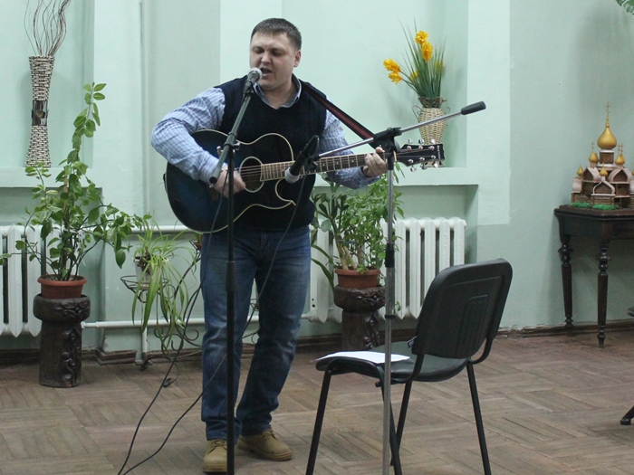 В завершение конкурса всех участников и их болельщиков ждал приятный сюрприз. Пока окончательно распределялись места и подписывались дипломы, для них пел свои песни Александр Чурсин и читал свои стихи, детские, Дмитрий Коваленко.