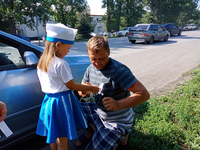 Кстати, в ходе акции, все водители получили воздушные шары, бумажных белых голубей с написанными на них стихами: "Должны друг друга уважать водитель с пешеходом! Друг другу не должны мешать, быть вежливым народом!", каждому повязали белые ленточки, символизируя этим жизнь и безопасность.