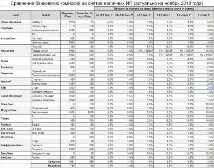 Ну, и для подтверждения цифр тарифов / банковских комиссий вот такая табличка: