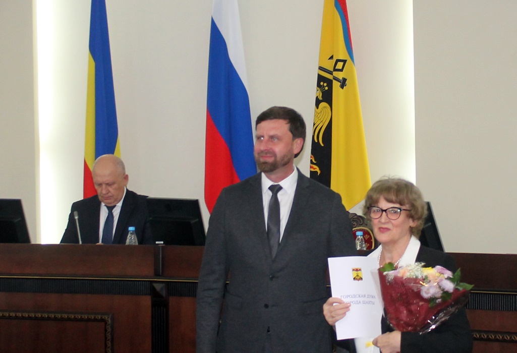 Тут же поздравили с прошедшим днём рождения председателя Контрольно-счётной палаты города Шахты Галину Аверкину.