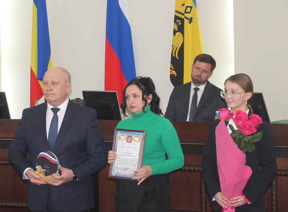 Стоя чествовали собравшиеся Ирину Маликову. Её муж Евгений Маликов, участник СВО, скончался от ран в августе. Он был членом Общественной палаты пятого созыва, его проект признан лучшим на региональном конкурсе "Общественное признание" в номинации "Новые вызовы в воспитании. Патриотизм". Знак лауреата и диплом торжественно вручили вдове.