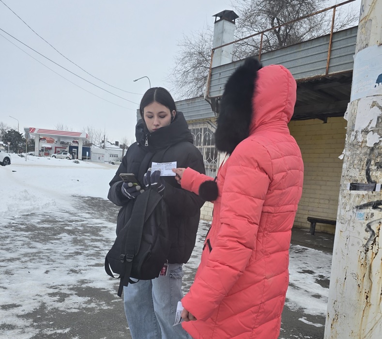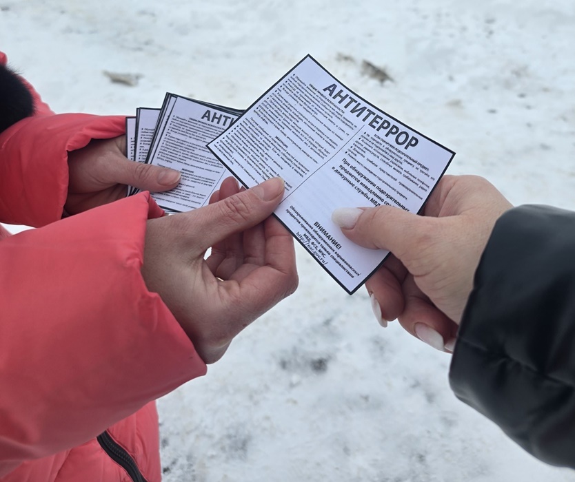 Сотрудники клуба "Планета" провели акциею "Террор без расписания". Они раздавали прохожим на улице памятные листовки, напоминая о важности бдительности и солидарности.