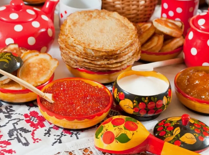 Блины начинают печь прямо с понедельника. В старину первое масленичное лакомство отдавали бедным, либо выкладывали на подоконник или порог. Считалось, что так семья отдаёт дань предкам.