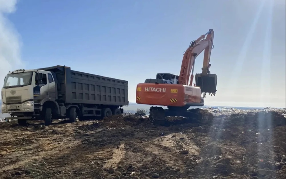 В числе принимаемых мер - обустройство бермы: организована подготовка и укрепление наклонных участков. Бермы служат физическим барьером, препятствующим распространению пламени и искр на соседние участки полигона и прилегающие территории. Укрепленные грунтом бермы снижают вероятность повторного тления мусора благодаря уменьшению доступности кислорода и созданию естественного препятствия для распространения тепла и газов.