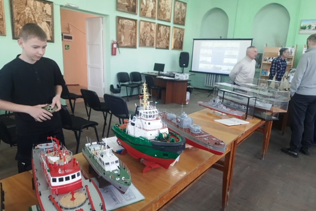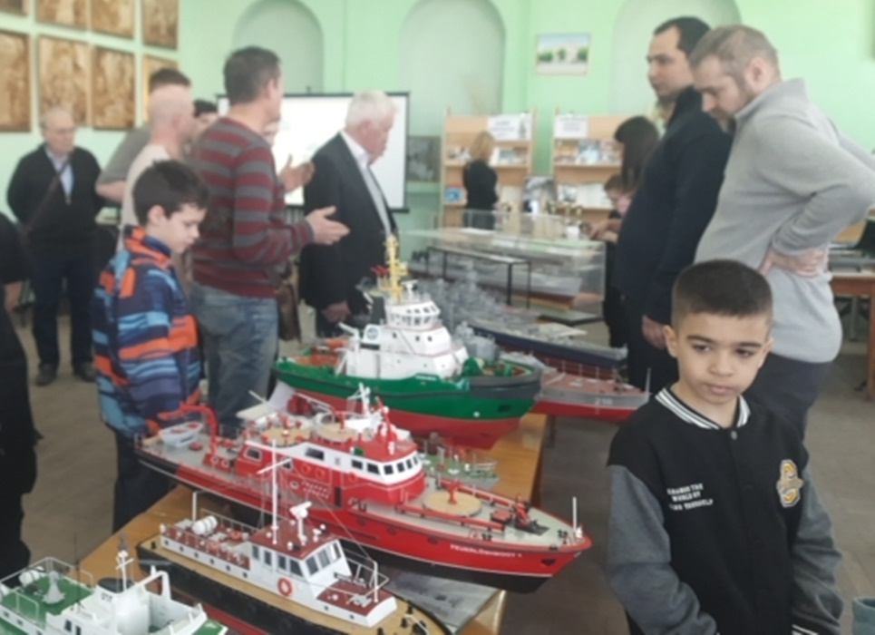 Именно в зале библиотеки после общего собрания членов Федерации судомодельного спорта Ростовской области были представлены стендовые модели различных судов. Тут были и катера - от вёсельного до бронекатера, и рыболовное судно, и буксир, подводные лодки, шлюпки, линкор, эсминец, линейные корабли, крейсер "Москва" и другие.