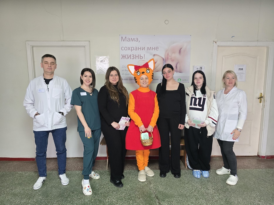 Сотрудники клуба "Планета" вместе с мультипликационным героем Карамелькой посетили женское отделение городской больницы N5. Там в тёплой и дружеской атмосфере они поздравили с замечательным праздником всех присутствующих. В знак внимания и поддержки каждая будущая мама получила трогательные открытки с самыми теплыми пожеланиями, а также особенный подарок - ленточку триколор. Этот символ единства народов России стал особенным напоминанием о том, что вся страна радуется и поддерживает их.