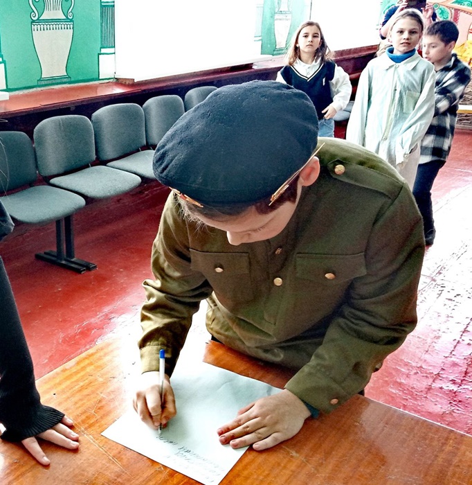 Слова признательности за ратную службу адресовала бойцам директор школы N27 Татьяна Гарковец. Она напомнила школьникам о возможности внести посильный вклад в приближение общей Победы участием в плетении маскировочных сетей и изготовлении блиндажных свечей, а также написанием душевных писем со словами поддержки и благодарности.