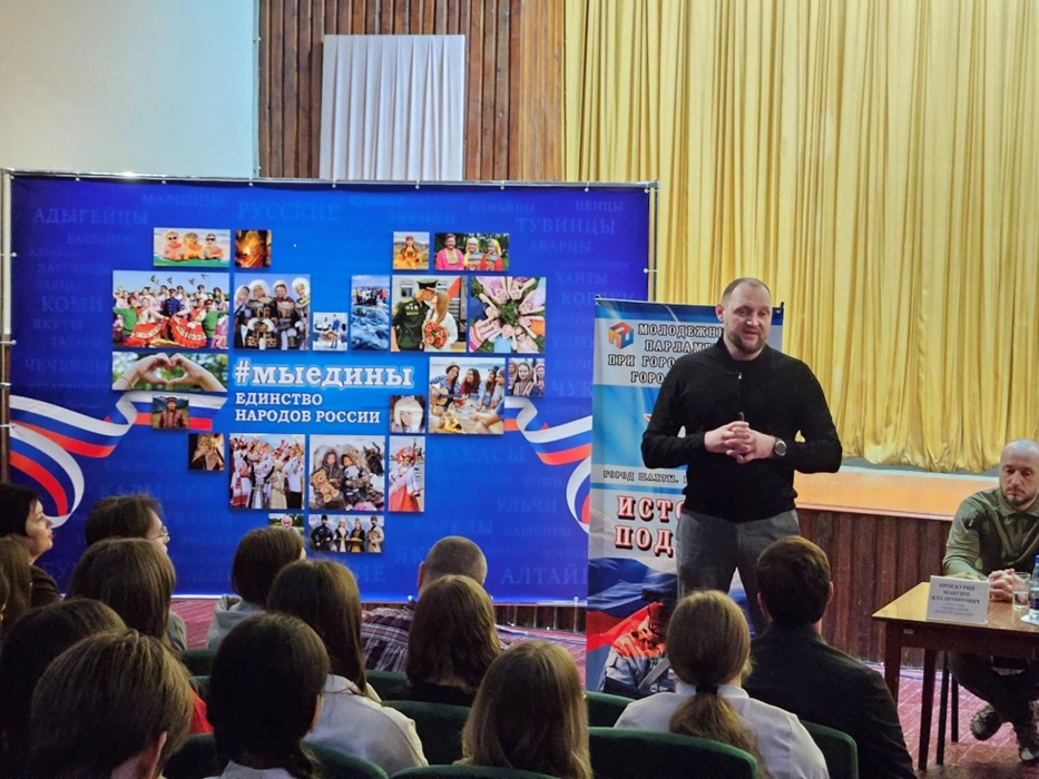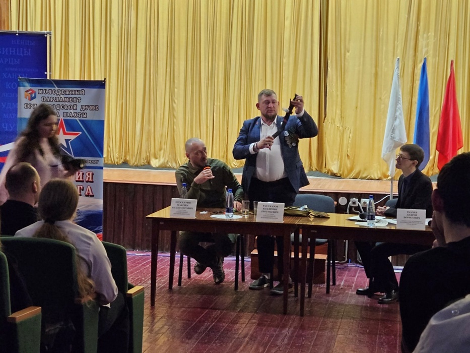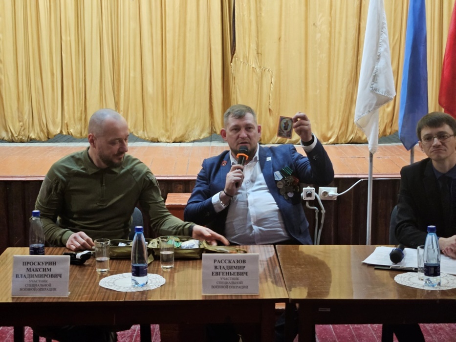 Встреча проходила в формате живого диалога с участниками специальной военной операции. Владимир Рассказов и Максим Проскурин поделились историями о героизме, о буднях на передовой и важности поддержки из дома. Старшеклассники задавали вопросы о трудностях боевых ситуаций и о том, как их преодолевают солдаты.