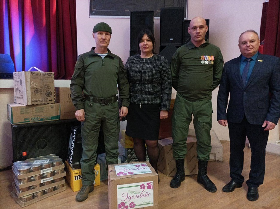 А предметы первой необходимости, снаряжение и продукты, собранные жителями поселка Аютинского, помогла отправить за ленточку депутат Законодательного собрания области Ирина Жукова.
