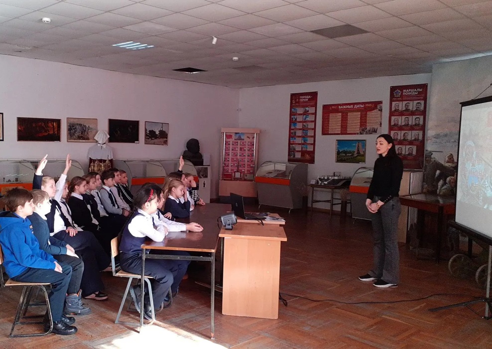 В День освобождения города ученики младших классов гимназии имени Пушкина побывали в городском краеведческом музее. Для них провели экскурсию по залу, где развёрнута экспозиция о городе Шахты и шахтинцах во время Великой Отечественной войны. Ребятам рассказали о страшных месяцах оккупации города немецко-фашистскими захватчиками, о героях-подпольщиках о жителях города, героически сражавшихся на фронтах и ковавших победу в тылу. Дети посмотрели презентацию и ответили на вопросы, показав, что они знают об истории родного города.