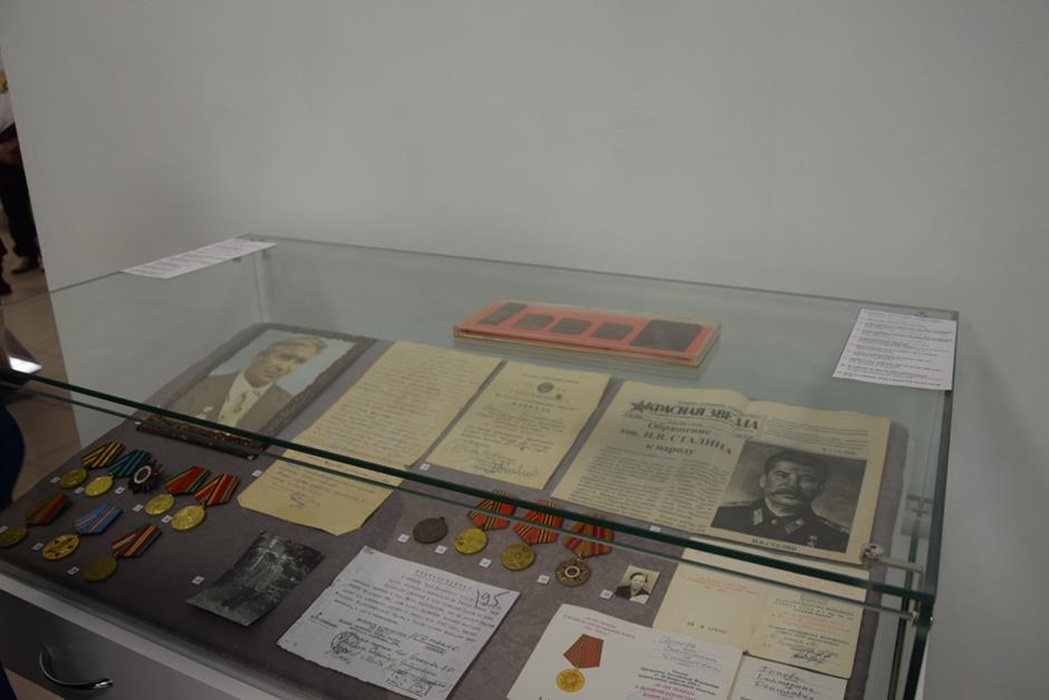 Фонд школьного музея к моменту открытия насчитывал 80 экспонатов. Каждая из трёх музейных секций посвящена ратным подвигам разных времён: Отечественной войне 1812 года, Великой Отечественной и специальной военной операции. На стендах представлены макеты кремниевых ружей, пистолей, холодное оружие, кавалергардский палаш, шашки, фотографии, наградные документы и медали.