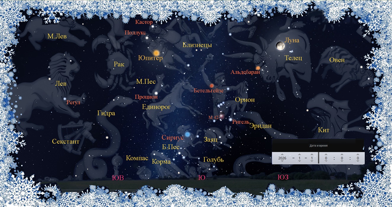 Какие созвездия и небесные объекты станут главными украшениями звёздного неба на Дону в праздничную ночь, и какие истории и мифы с ними связаны, рассказывает астроном Южного федерального университета. Заведующий учебной обсерваторией кафедры физики космоса Физического факультета ЮФУ Михаил Невский подготовил краткий путеводитель по звёздной карте на 31 декабря 2025-1 января 2026 года.