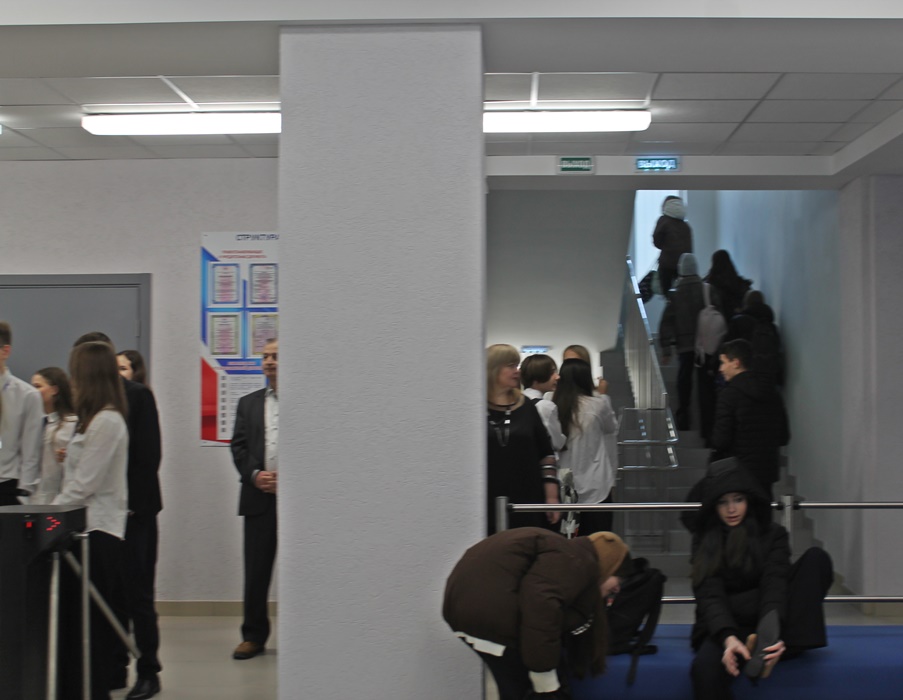 И вот, наконец, свершилось - гимназисты вернулись домой. На входе их встречали звуки "Гаудеамуса", пушкинский силуэт на стене и виды обновлённых помещений гимназии на экране.
