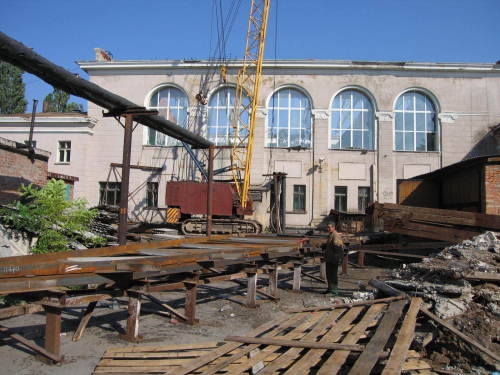 Строительные работы были начаты в мае, и сейчас ремонт идет полным ходом. Полностью демонтирована старая кровля - ее планируют заменить на металло-черепичную, и уже на 50% завершена установка новых перекрытий. После этого в бассейне мастера сделают новый красивый потолок. Еще в этом году заменят сети электроснабжения, горячего и холодного водоснабжения и вентиляцию во всем здании.