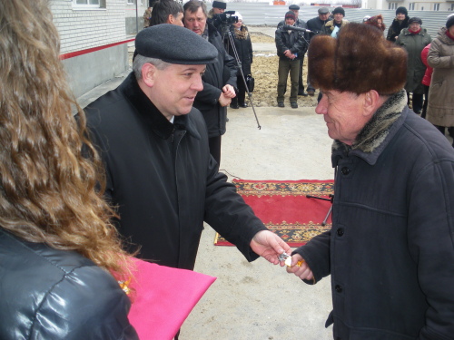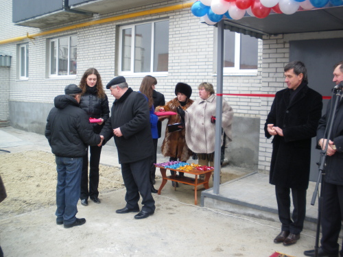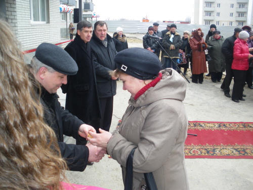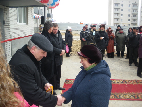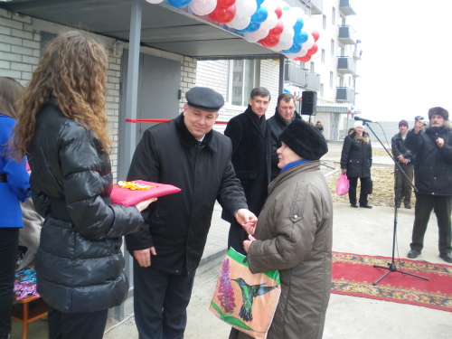 Всего в новом доме 60 квартир, в том числе по 20 квартир одно-, двух- и трехкомнатных. И в этот день были вручены ключи будущим жильцам этих квартир.