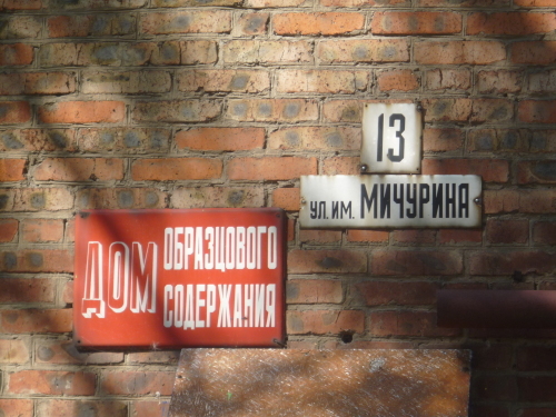 Улица Мичурина города Шахты, дом 13. На доме красуется красная табличка - "Дом образцового содержания". Но "образец" вводит в заблуждение, открывая совсем другую картину. Разбитая дорога к дому, просевший фундамент возле подъездов. Неподалеку переполненная водой яма, из которой частенько бьют порывы, заливая территорию около дома.