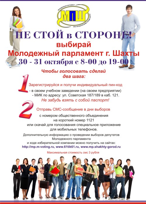 30-31 октября шахтинская молодёжь выберет для себя новых лидеров. Основной способ голосования - СМС-сообщение на короткий номер 1121.