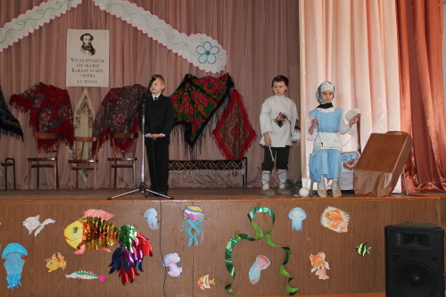 Вот уже более 20 лет в гимназии имени А.С. Пушкина в феврале по традиции проводят "Пушкиниану". На этот раз литературный праздник построили в виде викторины. Одни ученики начальных классов играли сценки, а другие - угадывали названия сказок. Едва на сцене начиналось действие, как уже дети в зале в унисон шептали правильный ответ. Им представили "Сказку о рыбаке и рыбке", "Сказку о царе Салтане", "Сказку о мёртвой царевне", "Сказку о золотом петушке" и "Лукоморье". "Сказку о Попе и работнике его Балде" показали полностью. Поведали, конечно же, биографию великого русского поэта и писателя. В заключении ребятам раздали сладости, а директор гимназии Людмила Дёмина поблагодарила их и учителей, под руководством которых школьники готовились к выступлениям. Это заместитель директора по воспитательной работе Наталья Вязникова, преподаватели начальных классов Т.И. Левина, Н.В. Милованова, Е.В. Максименко, М.Л. Чернышова, Е.А. Косова, О.Н. Погосьян, Т.В. Астраханцева, С.В. Толстых, Л.В. Трифонова, Н.Ю. Годлевская. А напоследок все хором пели песню "Пушкинская страна".