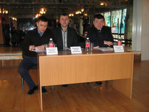 В городском Дворце культуры прошла встреча руководства Шахтинского отделения ГИБДД и сотрудников городской администрации с жителями города. Открыл и вёл встречу начальник Шахтинского отделения ГИБДД, майор полиции Сергей Быкадоров.
