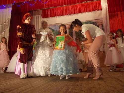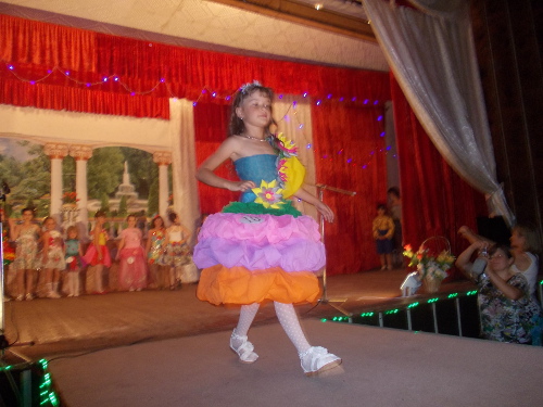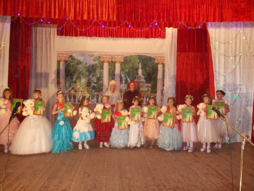 12 юных леди в возрасте от шести до двенадцати лет продемонстрировали свои наряды, умение показать себя на сцене, артистические способности. Победила самая младшая участница конкурса шестилетняя Лера Прокопенко. Титулы двух вице-мисс по единодушному решению жюри присуждены двум подружкам, двум Юленькам - Анацкой и Тереховой. Ну, а всем остальным участницам досталось по маленькой короне и по титулу, для каждой нашлась своя номинация, где она была самой-самой.