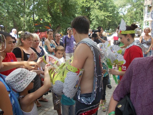 Самого Ванеева на празднике в Александровском парке не было, зато его питомцы - огромные белые живые индюки, были представлены и вызвали живой интерес публики, особенно детворы. Впрочем, почти сразу после полудня общее внимание переключилось на праздничную программу, которая длилась пять часов, и в которой чего только не было: и викторины с заманчивыми призами, и детская дискотека, и выступление фольклорного казачьего коллектива, и заключительное шоу. Гвоздём программы, конечно же, были дегустации, для которых, как сообщили организаторы, приготовили полсотни блюд из индюшатины: тут и всевозможные колбасы, сосиски, копчёности, и соус из индейки с фасолью, и пироги. Особой популярностью у участников дегустации пользовались шашлыки - их разметали с больших блюд практически мгновенно.