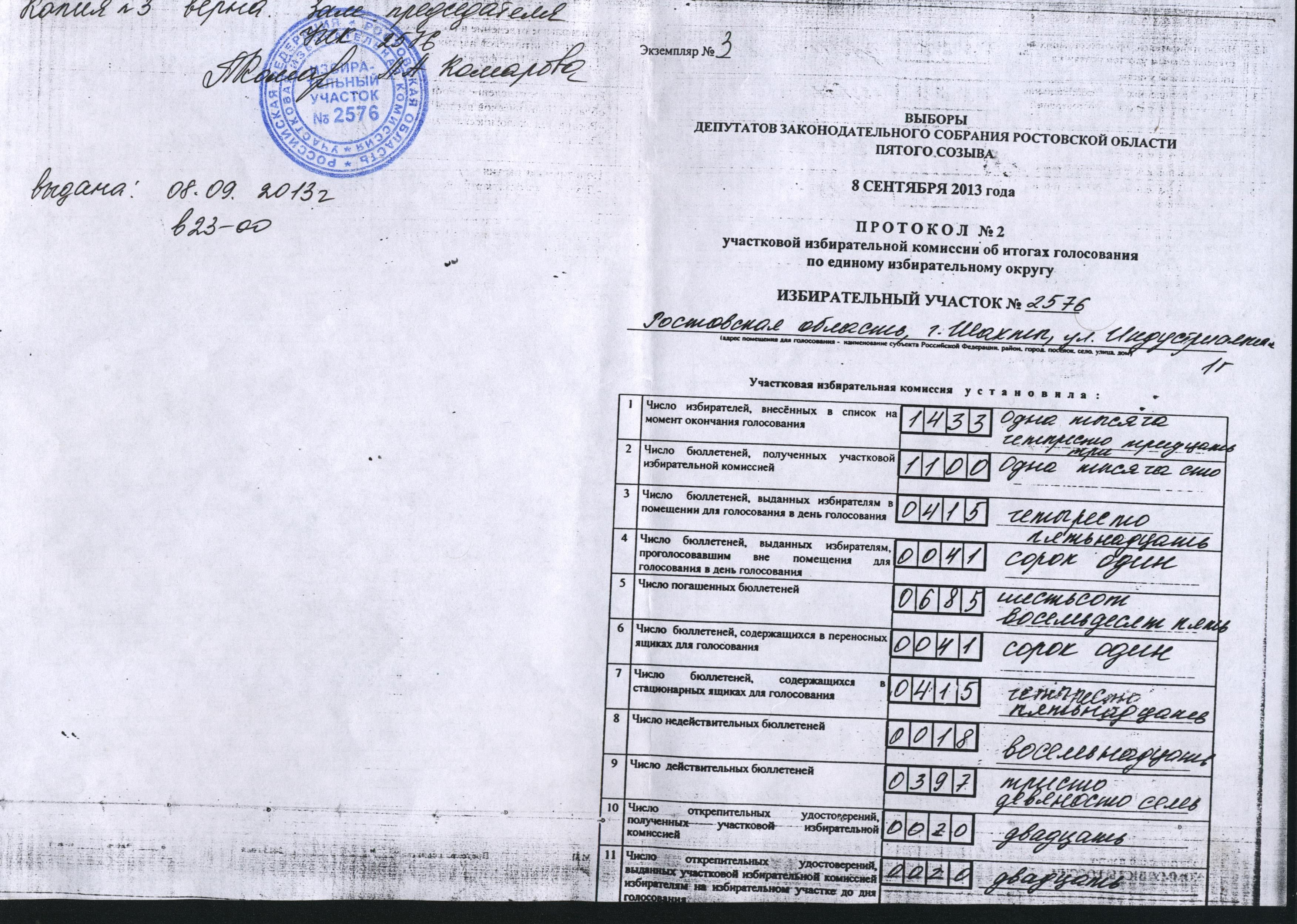 Считаю выборы в городе Шахты в ЗС РО пятого созыва сфальсифицированными, несостоявшимися, так как они не отражают реального волеизъявления граждан.