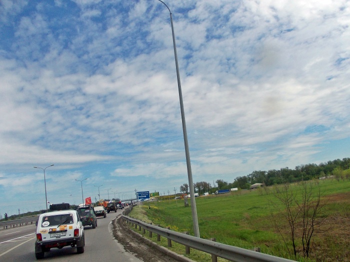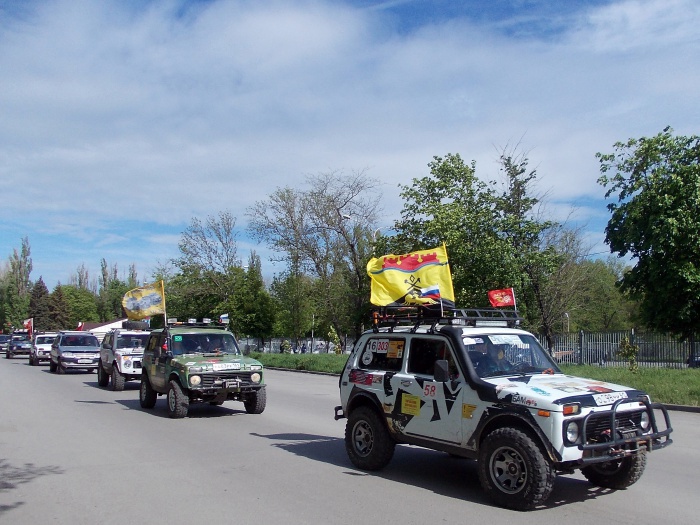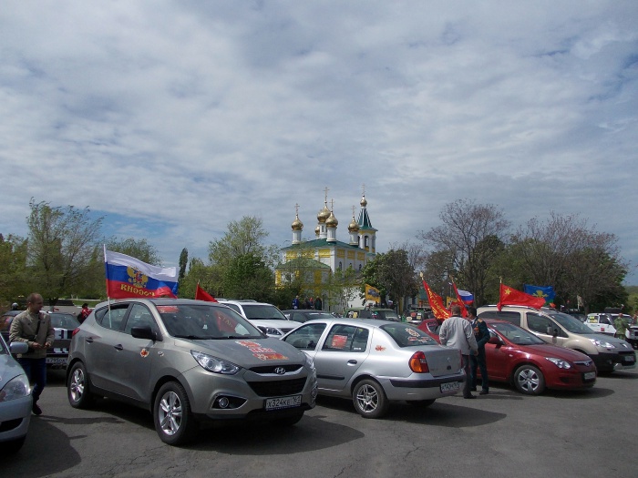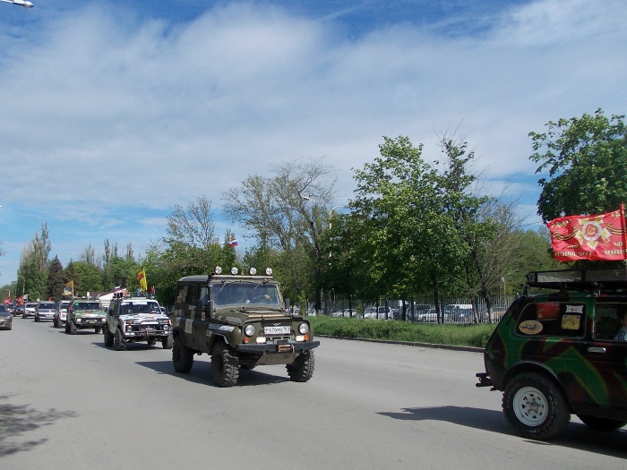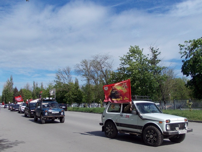 Сказано-сделано. Кинули клич шахтинские автомобилисты и байкеры насчёт автопробега в канун Дня Победы - и состоялся автопробег. Зрелище было впечатляющее. Когда колонна мотоциклов и машин с флагами и соответствующей случаю символикой двигалась по городу Шахты и посёлку Каменоломни, люди выходили из домов и магазинов, улыбались, махали приветливо. Молодёжь с восторгом снимала необычное зрелище на свои мобильники, кто-то поднимал вверх большой палец, кто-то приветствовал проезжающих знаком V - виктория, победа. На трассе встречные машины приветствовали автопробег гудками.