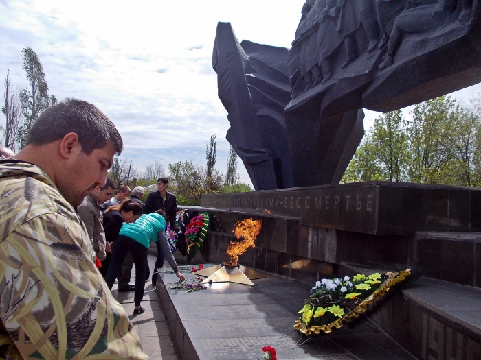 Как и собирались, участники автопробега возложили венки и цветы к Вечному огню и к стеле Героям Советского Союза в Александровском парке, к мемориалу Жертвам фашизма на Красина и к Аютинскому мемориалу. Благо, для тех, кто за рулём, расстояния между этими памятными местами - не проблема.